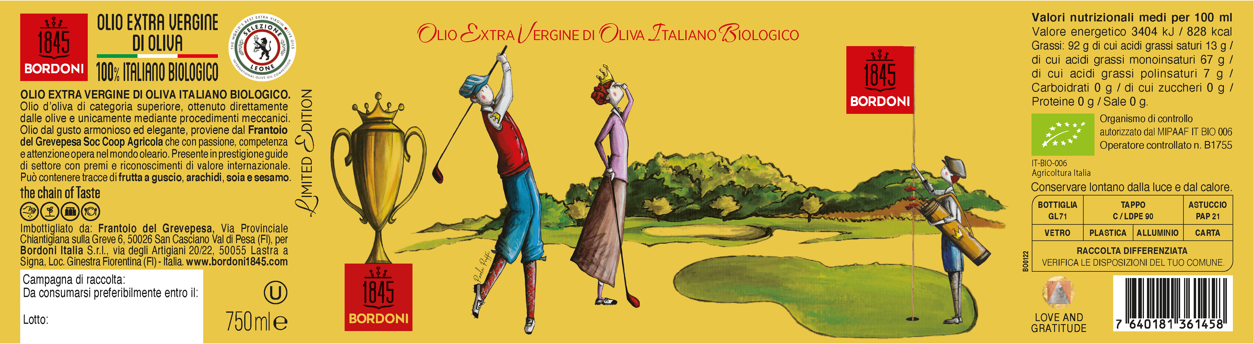 Olio Extravergine di Oliva Biologico prodotto dal Frantoio del Grevepesa, Toscana.